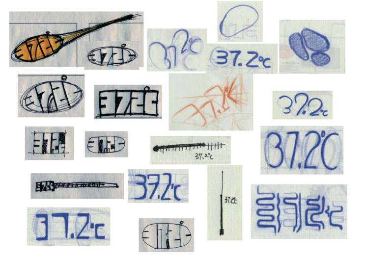 体温をコミュニケーション要素として取り入れることを探った携帯電話、37.2℃のロゴデザイン。